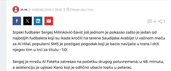 وصف الإعلام الصربي أداء سافيتش بأنه يتسم بالتركيز والفعالية، مشيرًا إلى أنه يظهر دائمًا في اللحظات التي يحتاجه فيها الهلال لتحقيق الانتصارات، مما يجعله عنصرًا لا غنى عنه في تشكيلة الفريق الأزرق.