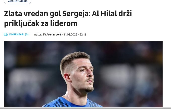 أشاد الإعلام الصربي بنجم نادي الهلال، سيرجي سافيتش، عقب تسجيله الهدف الحاسم الذي منح فريقه الفوز على الفتح، مؤكدًا أن اللاعب يثبت نفسه كواحد من أبرز لاعبي الوسط الذين يتمتعون بقدرة عالية على الحسم في دوري روشن السعودي.
