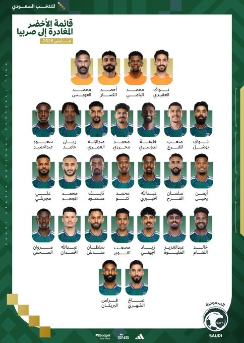 رينارد يغير تشكيلته ويستدعي محمد العويس وخمسة لاعبين جدد استعدادًا لمواجهة صربيا في تحضيرات كأس العالم 2026
